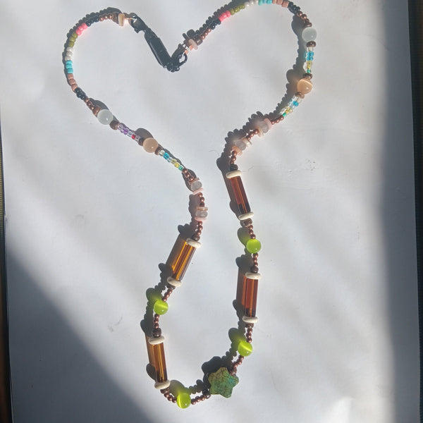 African Turquoise Star Pendant with Amber Rectangle Beaded Necklace